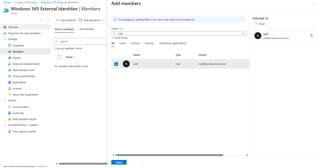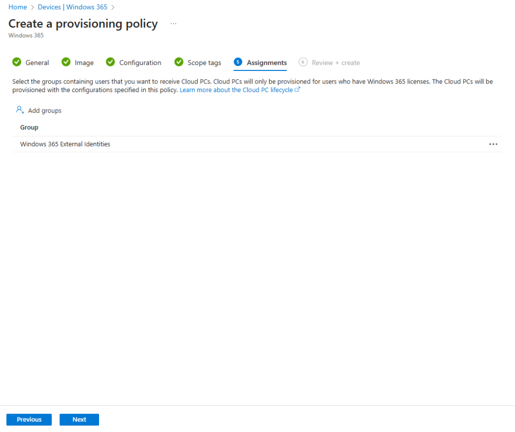 and on the Assignments screen, select a previously created Entra Id group with users that will be using this new ability.