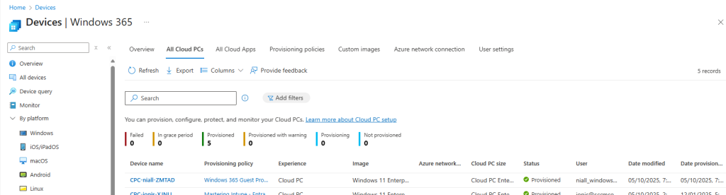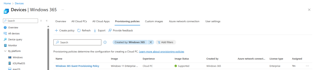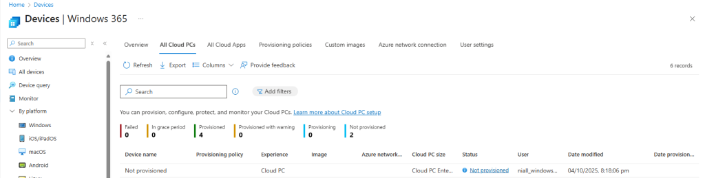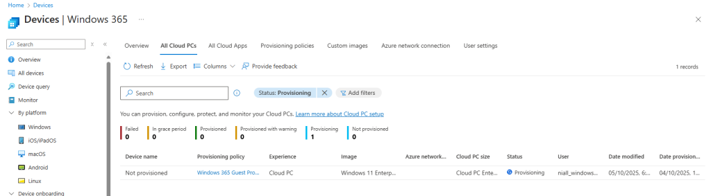 Once you’ve fixed the issues reported, which in our case we provisioned the Cloud PC in a location that was not yet supported for AI-enabled abilities, you’ll see a new status of Ready to use.