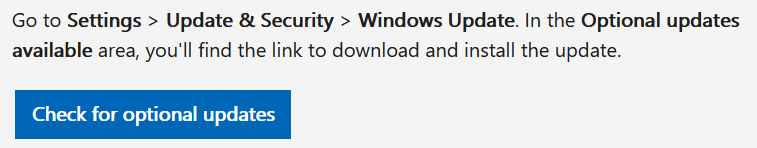 Or if you cannot do that, you can download it from Microsoft Update Catalog and deploy it out to your affected devices.