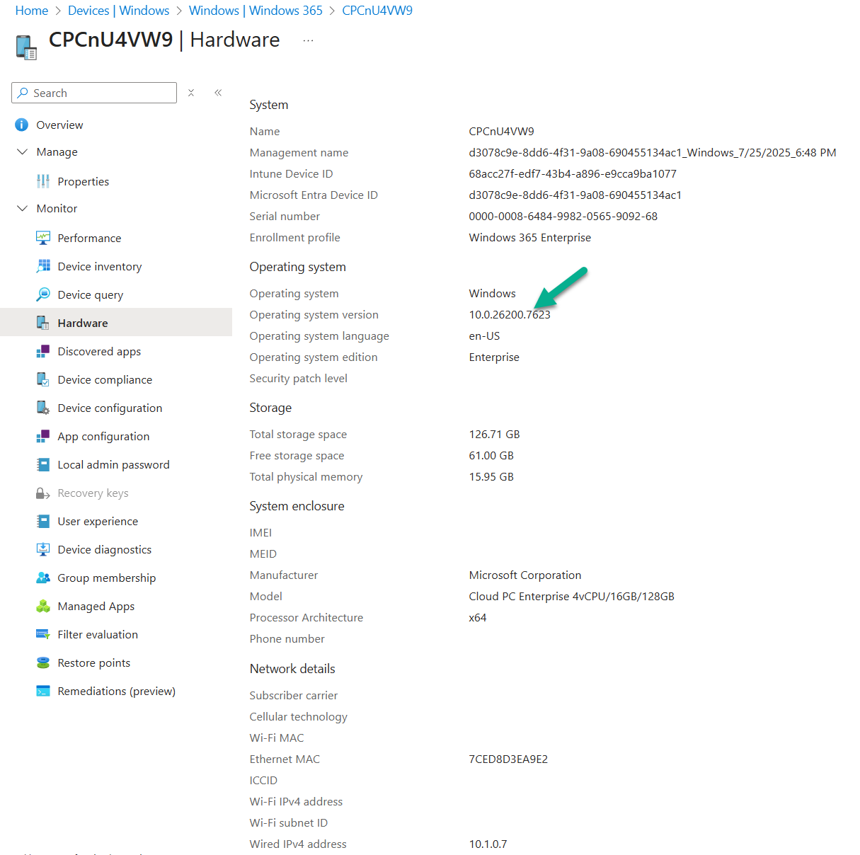 A quick look in Intune, revealed that indeed the problematic CU was indeed applied to my Cloud PC’s. Here’s a sample.