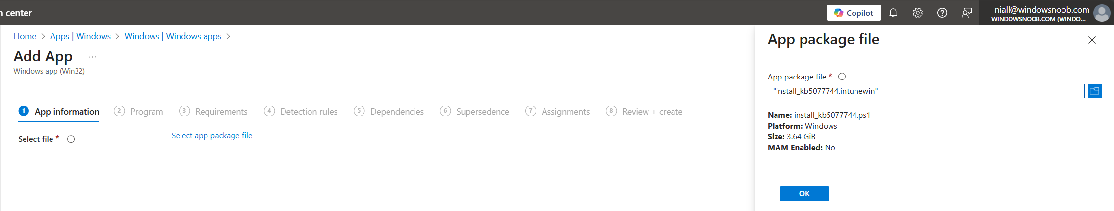 As KB5077744 is only currently available (at the time of writing, 2026/01/19) via Microsoft’s Catalog, you must deploy it (the msu) from Intune by wrapping it as a Win32 app.